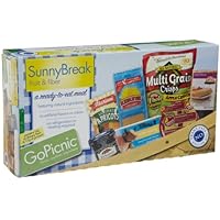 A great meal for breakfast or any time of day, SunnyBreak starts off with tasty sunflower seed butter, flax & honey lavash crackers and red raspberry preserves.Enjoy luscious diced pears, sweet apricots, white cheddar cheese, and apple-cinnamon multigrain crisps for whole grain goodness and crunch! Includes: ' Sungold Creamy Sunbutter, 1.1 oz: A rich creamy spread made from sunflower seeds that tastes just like peanut butter! Try it with strawberry preserves on a flaky, buttery organic cracker from Late July.' Pita Break Flax & Honey Lavash Crackers, 0.92 oz (4 crackers): Pita Break's flax & honey lavash crackers are hearty & high in fiber, while providing a great base for all sorts of tasty spreads! ' St. Dalfour Red Raspberry Preserves, 1 oz: St. Dalflour's Red Raspberry natural preserves are made in the heart of France's Loire Valley. No sugar added, and no preservatives!' Copper Cowbell White Cheddar Cheese Slice, 0.75 oz: A tasty slice of White Cheddar cheese from Copper Cowbell, GoPicnic's exclusive brand. Copper Cowbell gourmet cheeses have a base of all-natural cheddar cheese and, like all GoPicnic foods, do not require refrigeration.' Sensible Portions Apple Cinnamon Multigrain Crisps, 0.84 oz: A tasty apple-cinnamon snack with only 100 calories per serving, plus healthy multigrains -- nutritious indulgence!' Sweet Perry Orchards Diced Pears in Pear Juice, 4 oz: Simply sweet, ripe diced pears in pear juice -- no sugar added.' Mariani Ultimate Apricots, 1 oz: Our Mariani Ultimate apricots are one of the favorite products in GoPicnic meals! These are the juiciest, sweetest dried apricots you've ever tasted.' GoPicnic Signature Mint: Pure & simple, fresh & minty, the only ingredients in GoPicnic's signature mint are sugar and natural peppermint oil!' Knife, spoon and gingham picnic napkin ' Moist ToweletteWant to learn more information about GoPicnic SunnyBreak, Fruit & Fiber, Ready-to-Eat Meals (Pack of 4)?